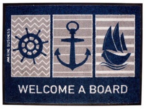 Mooie beige nautische style deurmat met nautische motieven. Deze bootmat in de kleur beige is gemaakt van stevig, waterdicht en vlekbestendig vinyl.