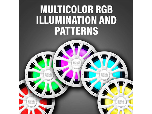 Passieve 10 inch maritieme subwoofer – 800 watt maximaal vermogen, enkele 4 ohm spreekspoel, RGB verlichting welke met de meegeleverde draadloze afstandsbediening waarmee je zaken in kunt stellen als snelheid, kleur, modus, helderheid en meer.