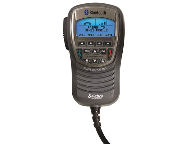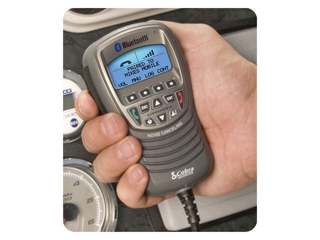 De verbinding met de mobiele telefoon gaat eenvoudig via Bluetooth draadloze technologie en op de microfoon zitten alle belfuncties die we gewend zijn van onze mobiele telefoon. Het is ook mogelijk om de microfoon aan te sluiten op het stereosysteem van de boot, om zo met de kracht van een versterkt systeem naar onze gesprekspartner te kunnen luisteren.