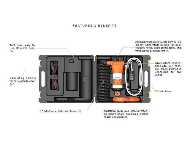Met deze set heeft u geen leidingwater van de haven meer nodig maar kunt u eenvoudig het water uit de haven oppompen en gebruiken.