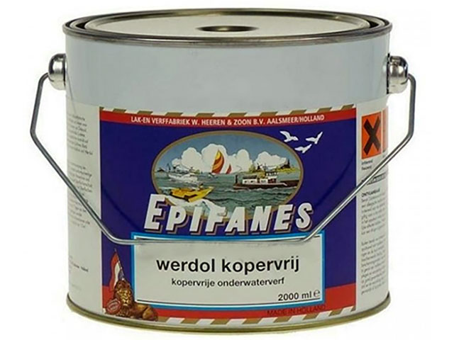 Epifanes Werdol Kopervrij 2000 ml is een half-synthetische onderwaterverf op basis van alkydhars en colofoniumhars. Bevat geen koper, koperverbindingen of tin.
