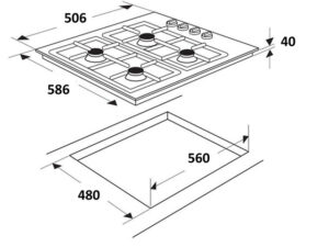Inbouwmaat B: 560mm x D: 480mm x H: 40mm