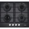 Dit RVS inbouw kooktoestel beschikt over 4 pitten en heeft de knoppen aan de boven kant.