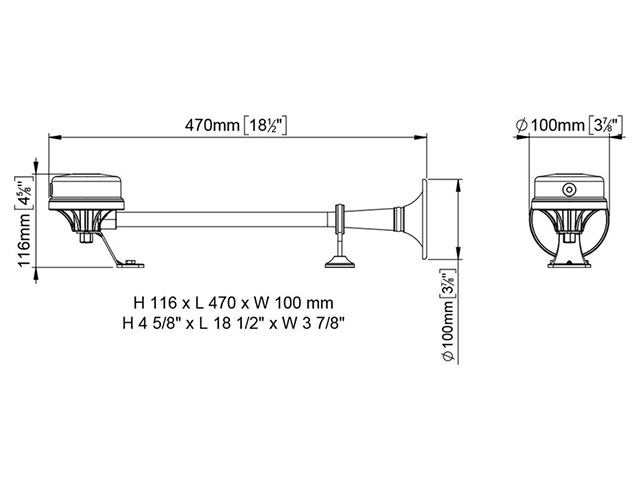 Krachtige akoestische eenheid zorgvuldig beschermd en vervaardigd van niet-corrosieve materialen, compleet met bevestigingsmateriaal.