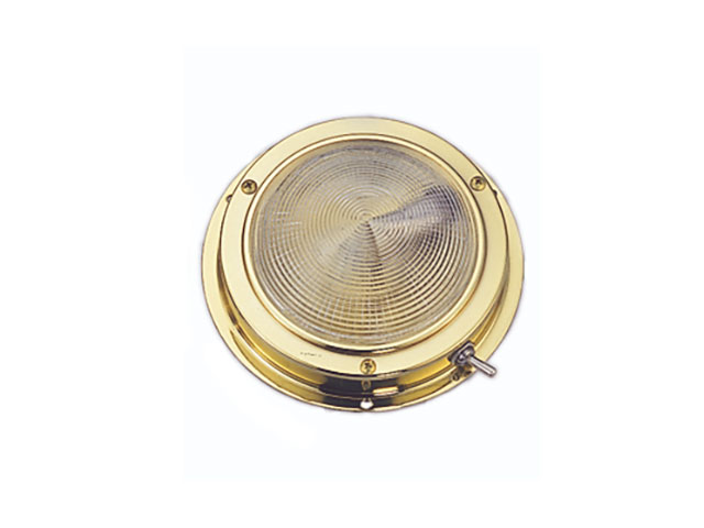 Plafonnier Metallo 4 is een kajuitlamp in messing met teak houten rand voorzien van 12 V – 15W gloeilamp en schakelaar.