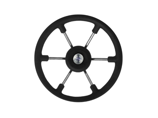 Stuurwiel Leader Tanegum41 is een 6-spaaks RVS stuurwiel, met witte of zwarte kunststof rand.