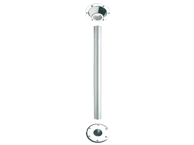 Tafelpoot Economy bestaat uit twee gegoten aluminium voetstukken (één basis montageplaat voor onderzijde tafelblad, en één verzonken montageplaat voor de vloer) en een geanodiseerde aluminium buis.