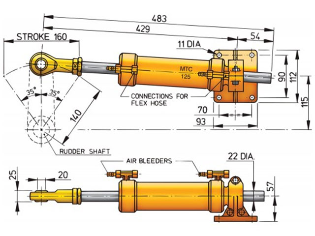 Vetus cilinder MTC12510,Ø voor Ø10 mm leiding (kunststof of koper), te combineren met stuurpompen HTP2010(R)(RT) t/m HTP4210(R)(RT) of MTP3010(R)
