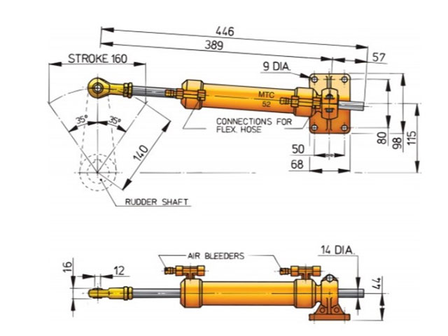 Vetus cilinder MTC5210, Ø voor Ø10 mm leiding (kunststof of koper), te combineren met stuurpomp HTP2010(R)(RT) t/m HTP4210(R)(RT), MTP2010(R) – MTP4210(R)