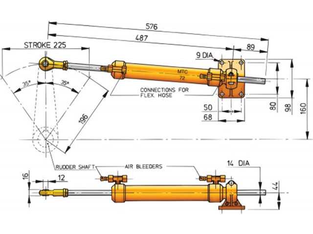 Vetus cilinder MTC7210, Ø voor Ø10 mm leiding (kunststof of koper), te combineren met stuurpompen HTP2010(R)(RT) t/m HTP4210(R)(RT) of MTP2010(R)